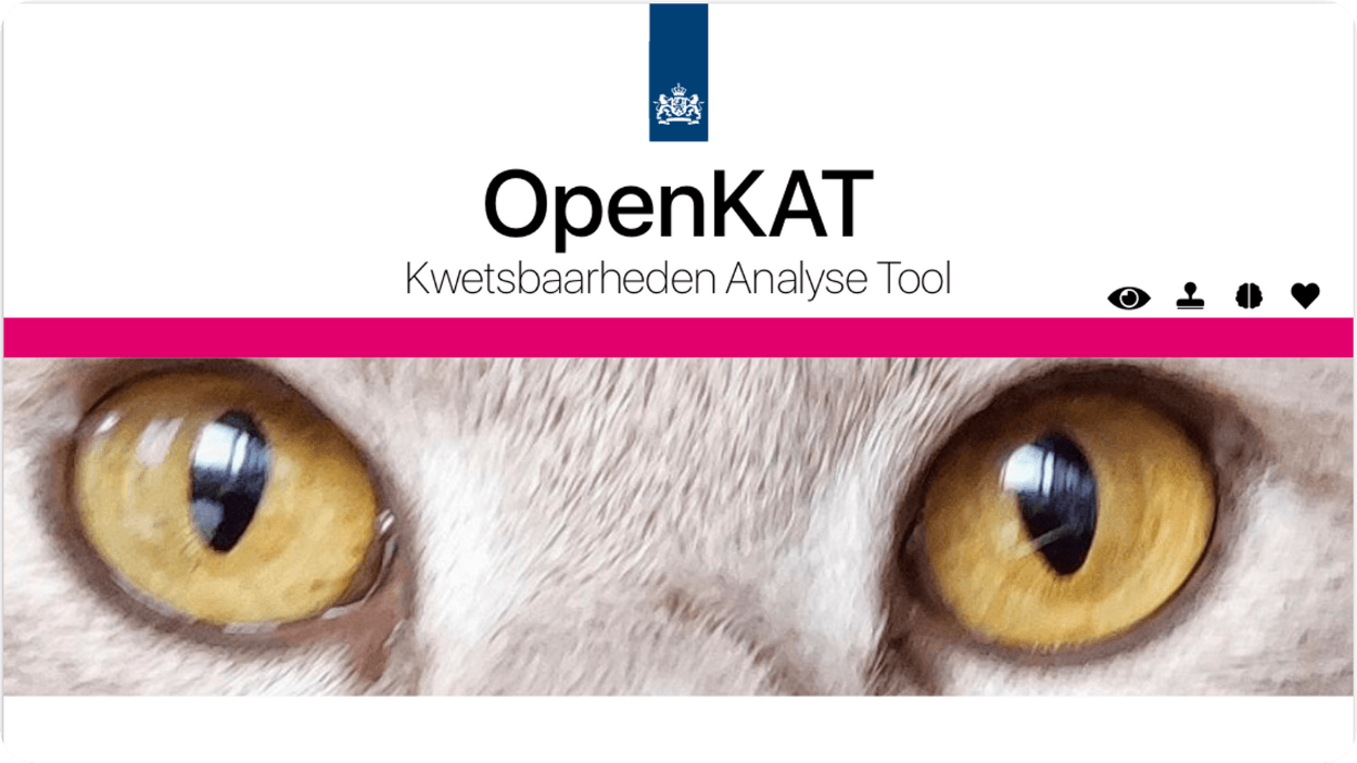 OpenKAT scant netwerken, analyseert kwetsbaarheden en maakt toegankelijke rapportages. Het Ministerie van VWS heeft de Kwetsbaarheden Analyse Tool (KAT) ontwikkeld en deze open source beschikbaar gesteld.