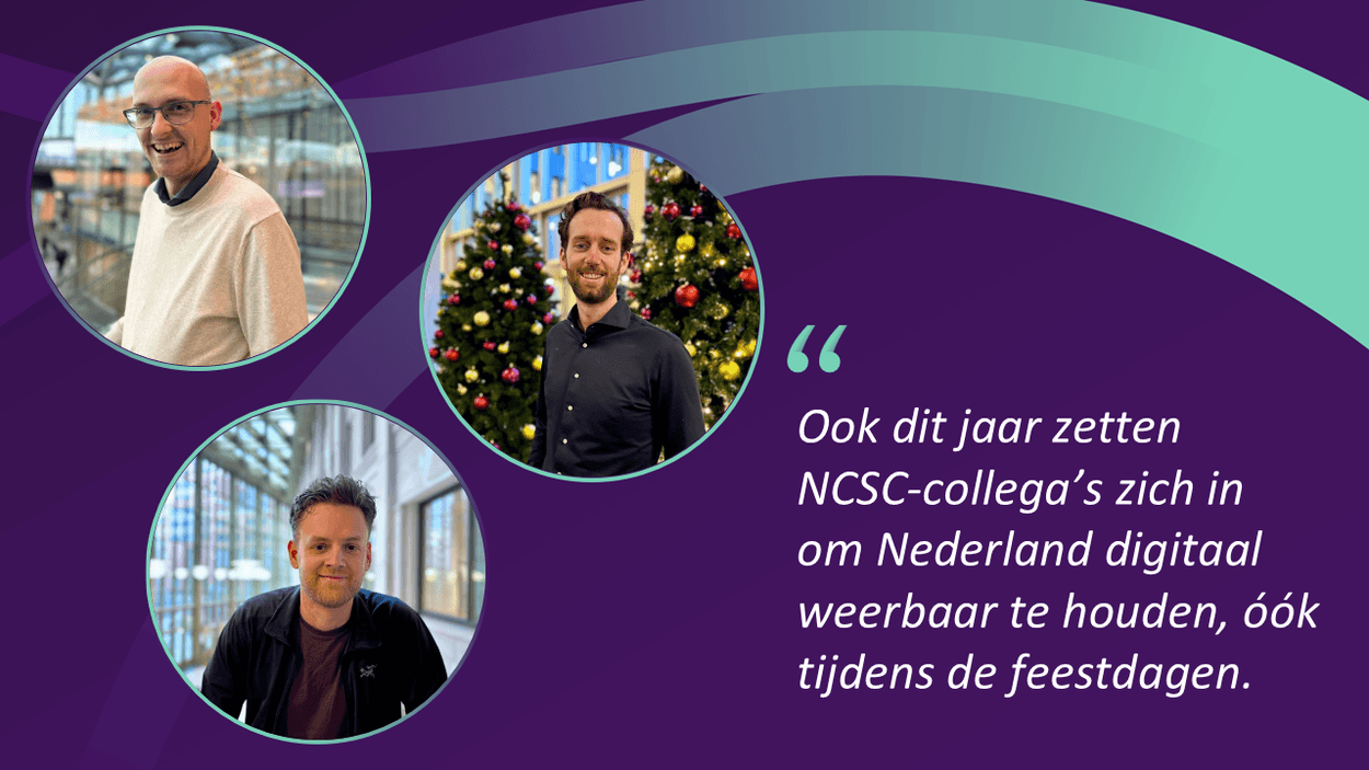 NCSC-collega’s Mike (Coördinator RCC), Stijn (Triage Officer) en Romke (Bestuursadviseur) vertellen hoe het is om paraat te staan tijdens de feestdagen. Lees hier het hele interview.
