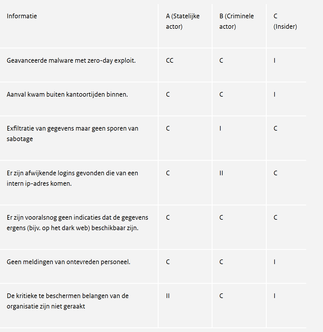 - Echter, adviseert het analyseteam om op een aantal datapunten aanvullend onderzoek te doen. Onder andere welke te beschermen belangen (kroonjuwelen) van de organisatie precies geraakt zijn en hoe de malware in detail werkte.