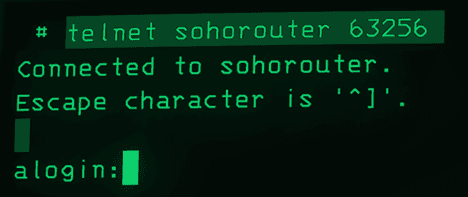 Het programma /tmp/alogin wordt uitgevoerd als de login-handler voor de originele telnetd-binary met behulp van het volgende commando: telnetd -p 63256 -l /tmp/alogin