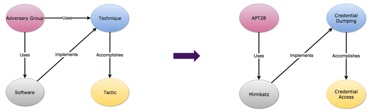 De afbeelding 4 komt uit de “Mitre attack design and philosophy” en geeft de relaties worden tussen actoren, software, tactieken en technieken.