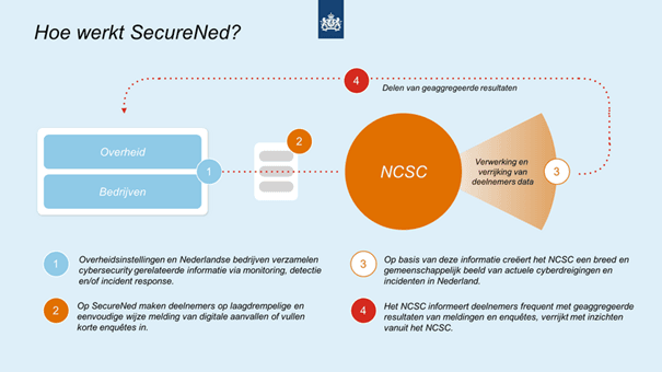Overheidsinstellingen en Nederlandse bedrijven die cybersecurity gerelateerde informatie via monitoring, detectie en/of incident response verzamelen, kunnen deelnemen aan SecureNed. Op SecureNed maken deelnemers op laagdrempelige wijze melding van digitale aanvallen of vullen korte enquêtes in. SecureNed biedt een vertrouwde en veilige omgeving voor deelnemers om informatie met elkaar te delen. Op basis van deze informatie creëert het NCSC een breed en gemeenschappelijk beeld van actuele cyberdreigingen en -incidenten in Nederland. Het NCSC informeert deelnemers regelmatig over resultaten van meldingen en enquêtes, verrijkt met inzichten van het NCSC.