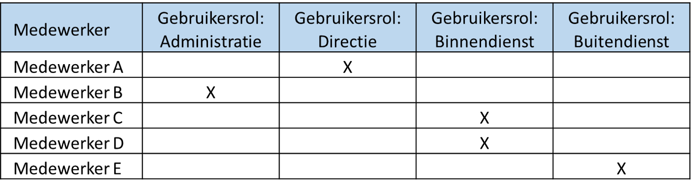 Rechtenmatrix met gebruikersrollen