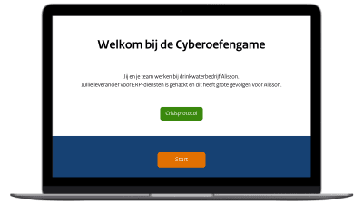 Hoe reageer je als je getroffen wordt door een ransomware-aanval? Dit kun je oefenen met de cyberoefengame 'Ransomware'. Er is voor dit spel gekozen voor een fictief drinkwaterbedrijf genaamd Alisson. Het bedrijf krijgt te maken met een crisissituatie waar je als deelnemer via korte video's deelgenoot van wordt. Je ervaart de aanpak, de dillema's en keuzes die het crisisteam onder tijdsdruk moeten maken. Uiteraard blijf je geen toeschouwer. In de oefening wordt ook getoetst of de crisismanagementprocessen en maatregelen van je eigen bedrijf of organisatie toereikend zijn.