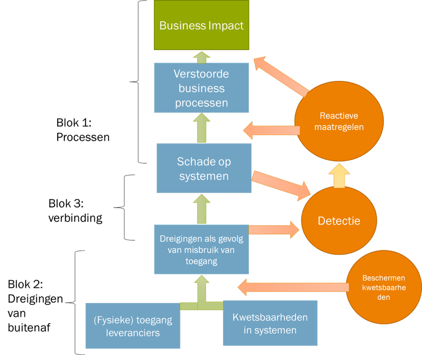 In 2020 is een basismodel ontwikkeld waarmee organisaties op basis van dreigingen en hun weerbaarheid tegen die dreigingen een kwantitatieve risico inschatting kunnen maken. Dit model is getoetst bij een vitale partij met een scenario met daarin een voorstelbare dreiging en systemen waarvoor die dreiging risico’s oplevert. In een aantal workshops, waaraan zowel IT- als OT-medewerkers deelnamen evenals technisch en bedrijfsvoering personeel, werd een gezamenlijk beeld van de risico’s in kaart gebracht die de gekozen dreiging opleverde voor de desbetreffende systemen. Het bijeenbrengen van verschillende expertises binnen de organisatie leidde tot nieuwe inzichten in de mogelijke effecten van het beschouwde scenario en de onderlinge relaties tussen de systemen en de bedrijfsprocessen. Het maken van kwantitatieve inschattingen van de risico’s bleek lastig te expliciteren door een gebrek aan ervaringscijfer met de voorstelbare dreiging.