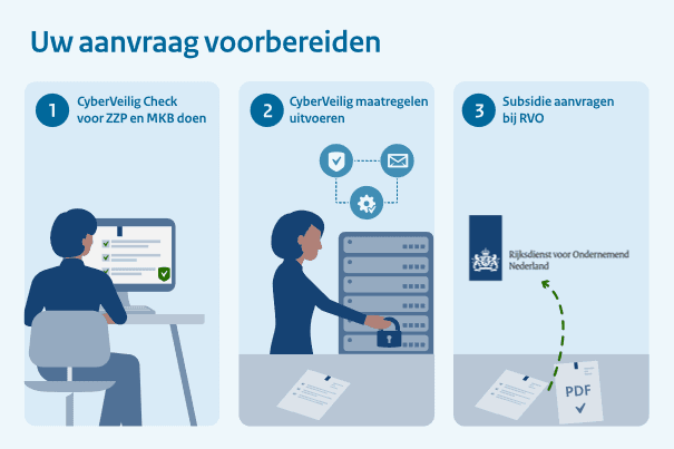 Via Mijn Cyberweerbare Zaak kan je de subsidie aanvragen. Kleinere bedrijven met 1 tot en met 50 medewerkers voor wie cybersecurity vaak niet een kerntaak is, kunnen nu met deze subsidie van het ministerie van Economische Zaken de nodige stappen zetten om hun bedrijf beter te beschermen tegen de toenemende cyberdreigingen en eisen die andere bedrijven in de bedrijfsketen stellen.