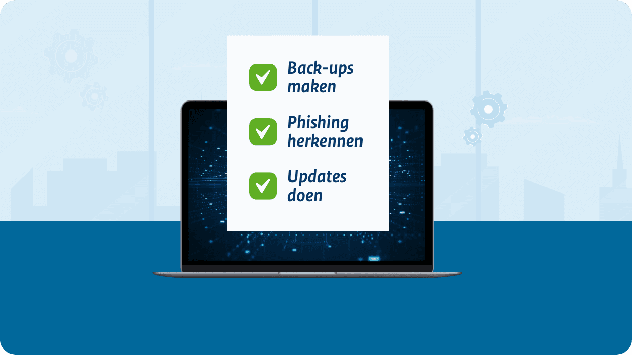 Heb je nog geen kennis en ervaring? Pak het dan praktisch en gefaseerd aan met de CyberVeilig Check voor zzp en mkb. Weet binnen 5 minuten wat je vandaag te doen staat om je bedrijf beter te beschermen tegen cyberaanvallen. Download je eigen actielijst en ga vandaag nog aan de slag met onze praktische instructies en tips.