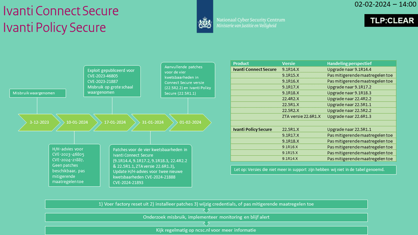 Controleer voor het meest recente beveiligingsadvies de website van het NCSC. Meer informatie over de update-instructies zijn te vinden op de website van Ivanti.