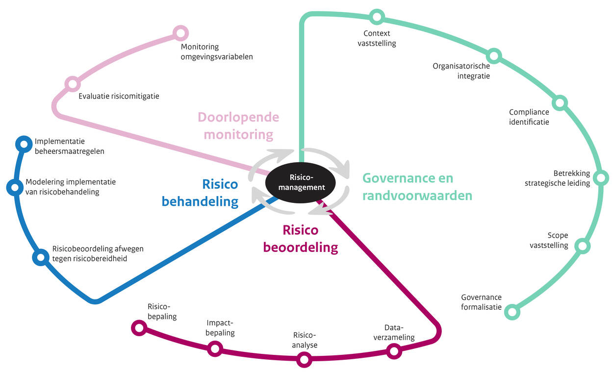 Het doel van risicomanagement is om een passend niveau van digitale weerbaarheid te bereiken en te behouden. Om dit doel te bereiken, onderscheiden we de achtergrond en vier hoofdcategorieën: